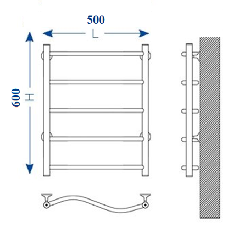 Gloss & Reiter Wave Л 50x60 В5 полотенцесушитель водяной, 5 перекладин, формы Лесенка в магазине tm24.by, большой ассортимент, доставка, с гарантией от производителя.