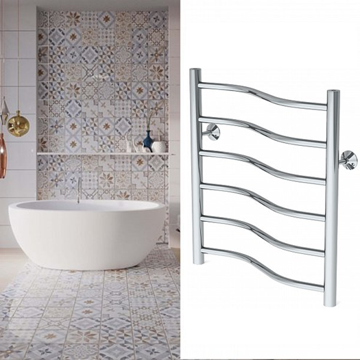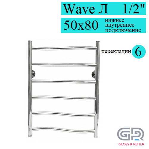 Gloss & Reiter Wave Л 50x80 В6 полотенцесушитель водяной, 6 перекладин, формы Лесенка в магазине tm24.by, большой ассортимент, доставка, с гарантией от производителя.