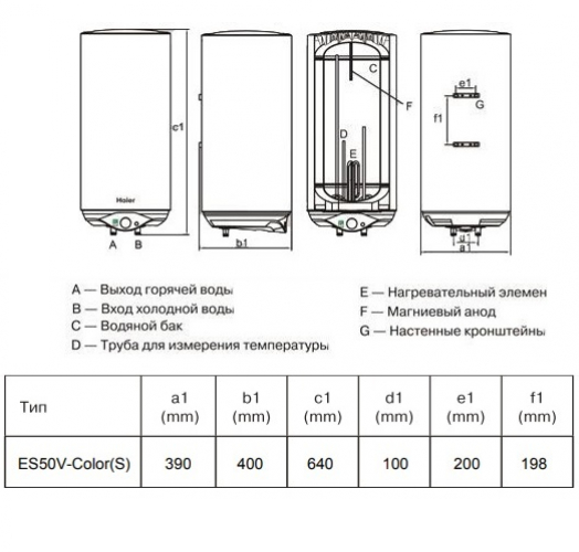 Инструкция. Haier ES50V-Color(S) водонагреватель.