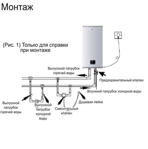 1. Накопительный водонагреватель объёмом: 50 литров.
