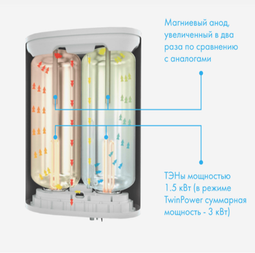 15. Twin Power - ускоренный нагрев воды благодаря работе двух ТЭНов.