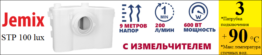 Максимальная температура сточных вод. Существует два вида насосов: для стоков с высокой температурой до +90 °С, когда к таким насосом можно подключать стиральные и посудомоечные машины. Второй вид насосов, к которым подключаются, только унитазы, раковины и душевые, где температура сточных вод не будет превышать +50 °С.