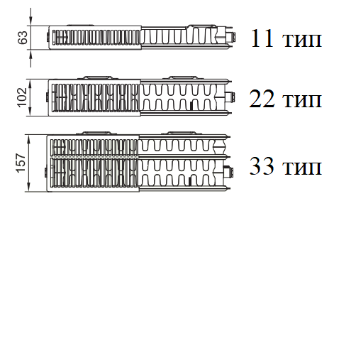 На заводе в России выпускаются радиаторы серии Profil типов 10, 11, 12, 20, 22, 30 и 33 с боковым или нижним подключением, длиной от 400 до 3000 мм, высотой 300, 400, 500, 600 и 900 мм.