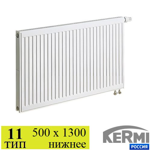 Kermi therm-x2 Profil-Ventil FTV 11 500x1300 радиатор стальной отопительный. Радиатор произведён в России на предприятии Kermi, по качеству и техническим характеристикам ничем не уступает немецким аналогам. Радиатор с нижним подключением, 11 тип, мощность радиатора 1491 Вт. Гарантия на радиатор 10 лет с момента продажи.