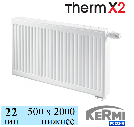 Kermi therm-x2 Profil Ventil FTV 22 500x2000 радиатор стальной отопительный. Радиатор произведён в России на предприятии Kermi, по качеству и техническим характеристикам ничем не уступает немецким аналогам. Радиатор с нижним подключением, 22 тип, мощность радиатора 3860 Вт. Гарантия на радиатор 10 лет с момента продажи. Радиатор с технологией therm X2.