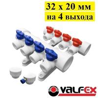 Коллектор универсальный с отсечными кранами 32 х 20 мм на 4 выхода Valfex. Белый