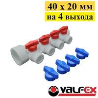 Коллектор универсальный с отсечными кранами 40 х 20 мм на 3 выхода Valfex. Серый