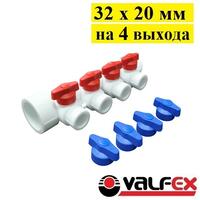 Коллекторная группа 32 х 20 мм на 4 выхода Valfex. Серая