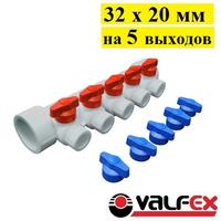Коллекторная группа 32 х 20 мм на 5 выходов Valfex. Белая