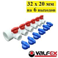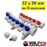 Коллекторная группа 32 х 20 мм на 6 выходов Valfex. Белая