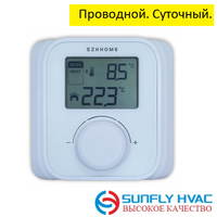 General HT250 комнатный термостат, режимы работы как на отопление, так и на охлаждение. Подключение к климатическому оборудованию с помощью провода. Термостат суточного управления с интеллектуальным режимом работы TPI. Большой дисплей с подсветкой, лёгкое управление. Термостат подходит для любого вида газовых, электрических котлов, а также к электрическим конвекторам.