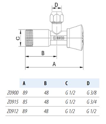 Латунный никелированный кран вентильного типа, ремонтопригоден. Рассчитан на применение при температуре воды до +95 °С и давлении до 16 бар. Размер подключения 1/2 х 3/8.