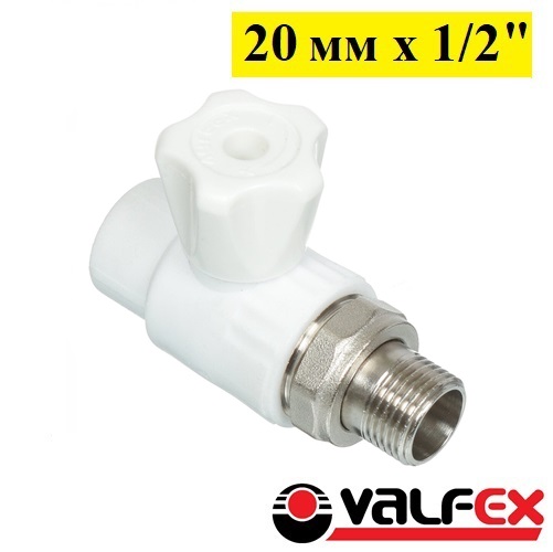 Кран шаровой для радиатора прямой Valfex 20 мм х 1/2. Белый