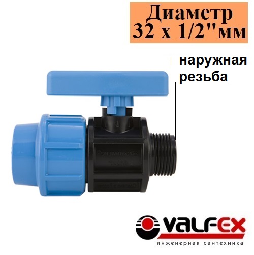 Кран шаровой компрессионный цанга-наружная резьба 32х1/2" Valfex. Россия