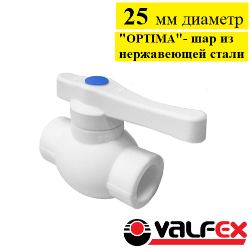 Кран шаровой полипропиленовый OPTIMA Valfex 25 мм. Белый