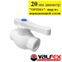 Кран шаровой полипропиленовый полупроходной с красной ручкой диаметром 20 мм Valfex белого цвета, используется в системах водоснабжения и отопления в качестве запорной арматуры. Диаметр проходного сечения крана уменьшен по сравнению с полнопроходным, что позволяет снизить поток. Производится методом литья под давлением.