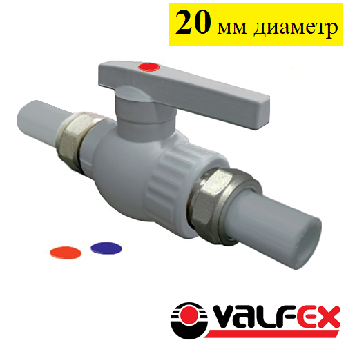 Кран шаровой полнопроходной с двусторонним разъемным соединением диаметром 20 мм Valfex серого цвета, используется в системах водоснабжения и отопления в качестве запорной арматуры. Служит для перекрытия потока жидкости в трубах. Разъёмное соединение позволяет демонтировать кран и установить на его место прямую муфту или другой фитинг. Производится методом литья под давлением, а латунные части производятся методом горячего штампования.