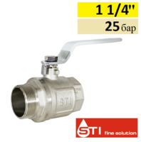 Кран шаровой Sti 1 1/2 наружная - внутренняя резьба, рычаг, относится к типу полнопроходных кранов, применяется в качестве запорной арматуры на трубопроводах систем хозяйственно-питьевого назначения и отопления. Кран сделан из высококачественной латуни с никелированным покрытием, что позволяет выдержать давление до 25 атмосфер, а температуру теплоносителя до +150 ˚С.
