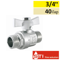 Кран шаровой Sti 3/4 накидная гайка с полусгоном, бабочка, относится к типу полнопроходных кранов, применяется в качестве запорной арматуры на трубопроводах систем хозяйственно-питьевого назначения и отопления. Кран сделан из высококачественной латуни с никелированным покрытием, что позволяет выдержать давление до 40 атмосфер, а температуру теплоносителя до +110 ˚С.