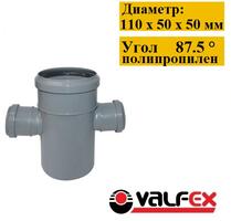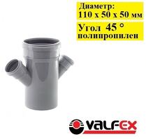 Крестовина одноплоскостная 45° для внутренней малошумной канализации Valfex Prime 110х50х50 мм. Россия