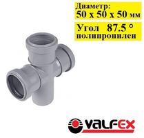 Крестовина одноплоскостная 45° для внутренней малошумной канализации Valfex Prime 50х50х50 мм. Россия