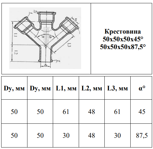 1. Крестовина одноплоскостная Valfex Prime 45° 50х50х50 мм - диаметры изделия по 50 мм, угол 45 градусов .