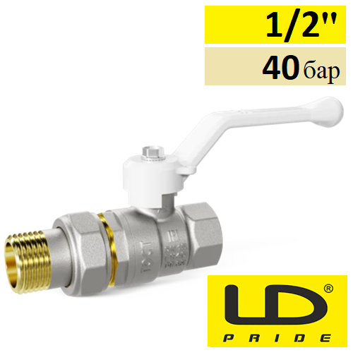 Кран шаровой латунный LD Pride Ду 15 Ру 40 рычаг 47.15.В-ГШ.Р (white)