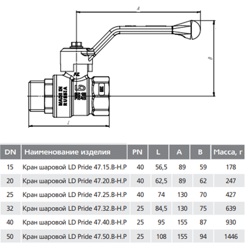Паспорт. Кран шаровой LD Pride внутренняя-наружная резьба.