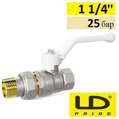 Кран шаровой латунный LD Pride Ду 32 Ру 25 рычаг 47.32.В-ГШ.Р (white)