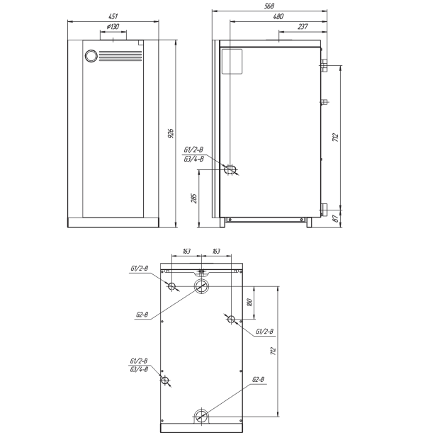 1. Напольная установка. Открытая камера сгорания. Мощность: 25 кВт.