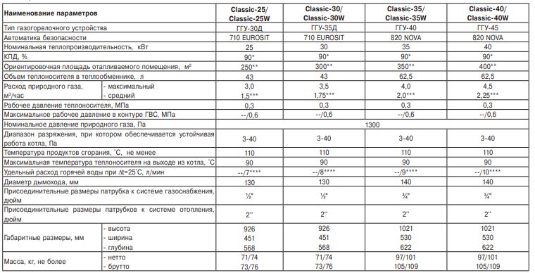 Лемакс Classic 25W газовый котёл, двухконтурный котёл, мощность 25 кВт, что позволит отапливать дом площадью до 250 м², и готовить горячую воду (7 л/минуту). Котёл предназначен для работы в открытой или закрытой системах отопления с давлением 3 атм.