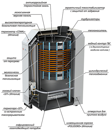 Лемакс Премиум-35 газовый энергонезависимый котёл, мощностью 35 кВт для отопления помещения площадью 350 м2. Открытая камера сгорания