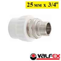 Муфта комбинированная переходная с наружной резьбой Valfex 25 мм x 3/4. Белая