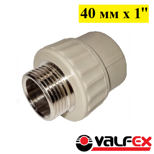 Муфта комбинированная переходная с наружной резьбой Valfex 40 мм x 1. Серая