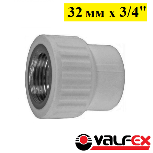 Муфта комбинированная переходная с внутренней резьбой Valfex 32 мм х 3/4. Серая