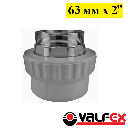 Муфта комбинированная переходная с наружной резьбой под ключ Valfex 63 мм x 2. Серая