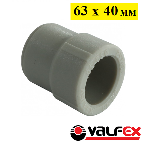 Муфта полипропиленовая переходная вн/нр Valfex 63/40 мм. Серая
