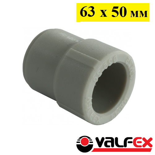Муфта полипропиленовая переходная вн/нр Valfex 63/50 мм. Серая