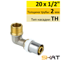 Муфта пресс Skat 20х1/2" с внутренней резьбой, служит для соединения металлопластиковой трубы диаметром 20х2 мм с запорной арматурой или другими деталями трубопроводов с наружной резьбой. Профиль насадки инструмента TH (самый распространенный среди монтажников). Кроме соединения металлопласта этим фитингом можно соединять PEX и PE-RT трубы такого же диаметра и толщины стенки.