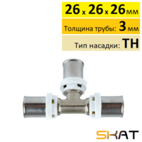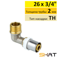 Муфта пресс Skat 26х3/4" с наружной резьбой, служит для соединения металлопластиковой трубы диаметром 26х3 мм с запорной арматурой или другими деталями трубопроводов с внутренней резьбой. Профиль насадки инструмента TH (самый распространенный среди монтажников). Кроме соединения металлопласта этим фитингом можно соединять PEX и PE-RT трубы такого же диаметра и толщины стенки.