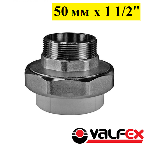Муфта разъёмная с наружной резьбой Valfex 50 мм x 1 1/2. Серая