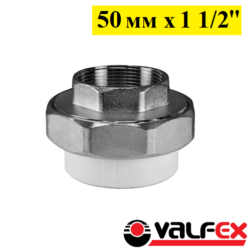 Муфта разъёмная с внутренней резьбой Valfex 50 мм x 1 1/2. Белая