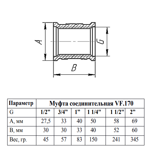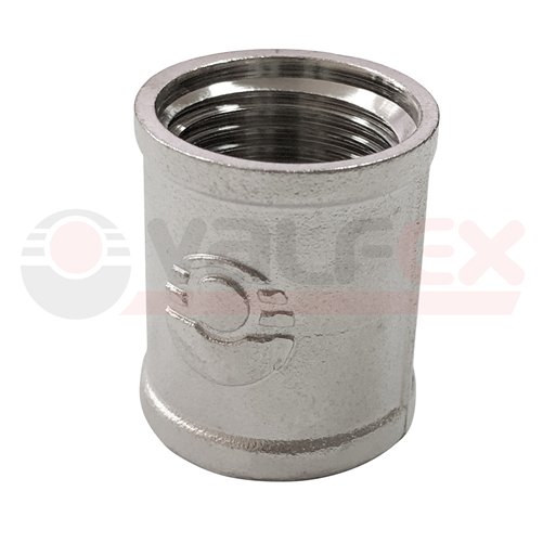 Муфта соединительная Valfex 1 1/2 латунь с никелевым покрытием VF.170.N.112, резьбовой фитинг, служит для прямого соединения труб и фитингов диаметром 1 1/2".