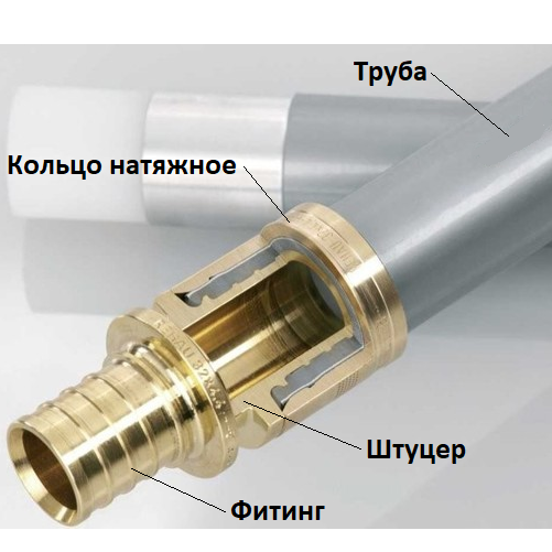 Аксиальные фитинги (натяжные фитинги) предназначены для монтажа неразъемного соединения труб из сшитого полиэтилена (PE-X или PE-RT). Настоящие фитинги относятся к категории неразборных, поэтому могут применяться в скрытом монтаже, заливаться стяжкой и замоноличиваться.