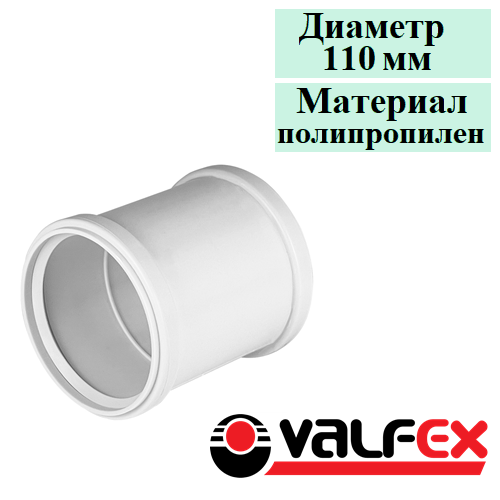 Муфта двухраструбная (с перегородкой) для внутренней малошумной канализации Valfex Prime 110 мм. Россия