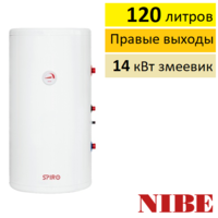 Бойлеры косвенного нагрева серии Nibe Spiro W-E производятся объёмом 100, 120 и 140 литров, а так же имеют левое (L) или правое (P) подключение к системе отопления. Установлен анод увеличенного размера. Как опцию можно установить дополнительно электрический тэн.