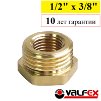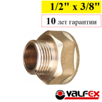 Переходник Valfex 1/2х3/8 латунь с никелевым покрытием VF.592.N.012.038, латунный резьбовой фитинг, служит для перехода с внутренней резьбы на наружную 1/2" и 3/8".