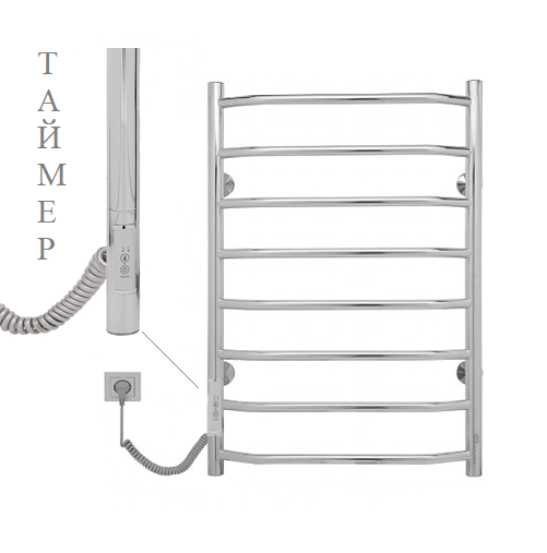 Gloss & Reiter Terra Э2 Л 50х80 Т8 Л с таймером полотенцесушитель электрический, 8 перекладин, формы Лесенка в магазине tm24.by, большой ассортимент, доставка, с гарантией от производителя.