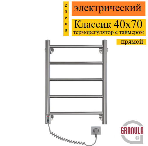 Купить Granula Классик прямой 40x70 D32 терморегулятор с таймером слева полотенцесушитель водяной в магазине tm24.by, большой ассортимент, доставка, с гарантией от производителя.