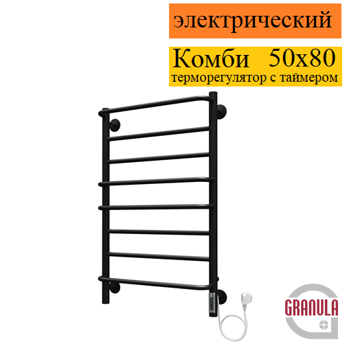 Полотенцесушитель электрический Granula Комби 50x80 D32 терморегулятор с таймером черный матовый
